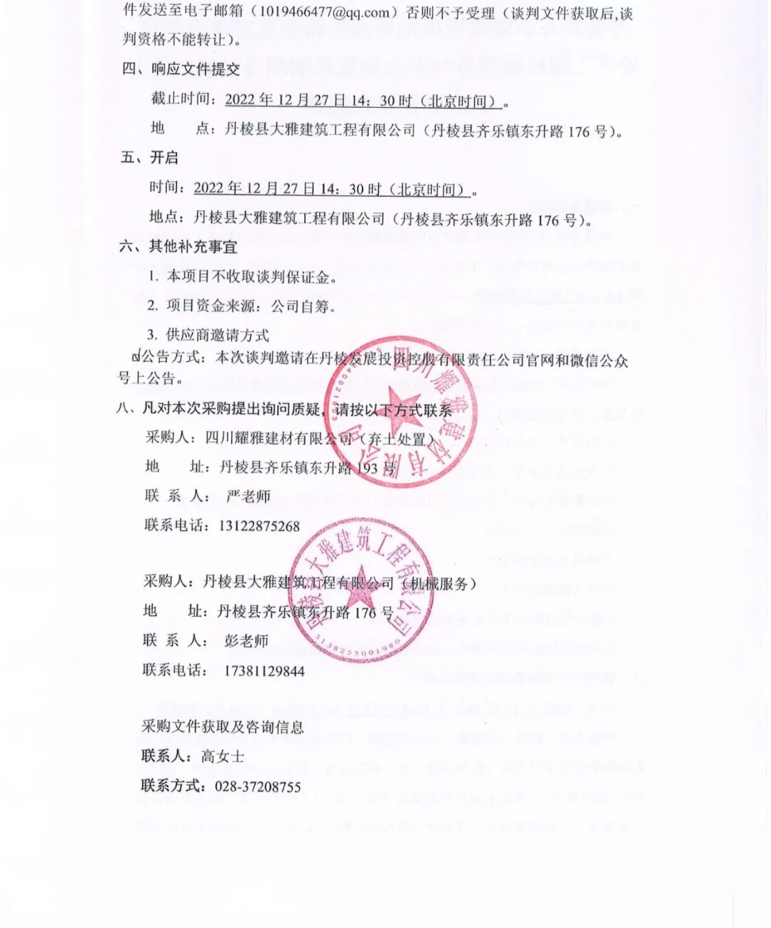 丹棱縣齊樂鎮(zhèn)建設(shè)用地增減掛鉤安置房建設(shè)項目場平工程機械服務(wù)與棄土處置采購項目(第二次)競爭性談判邀請