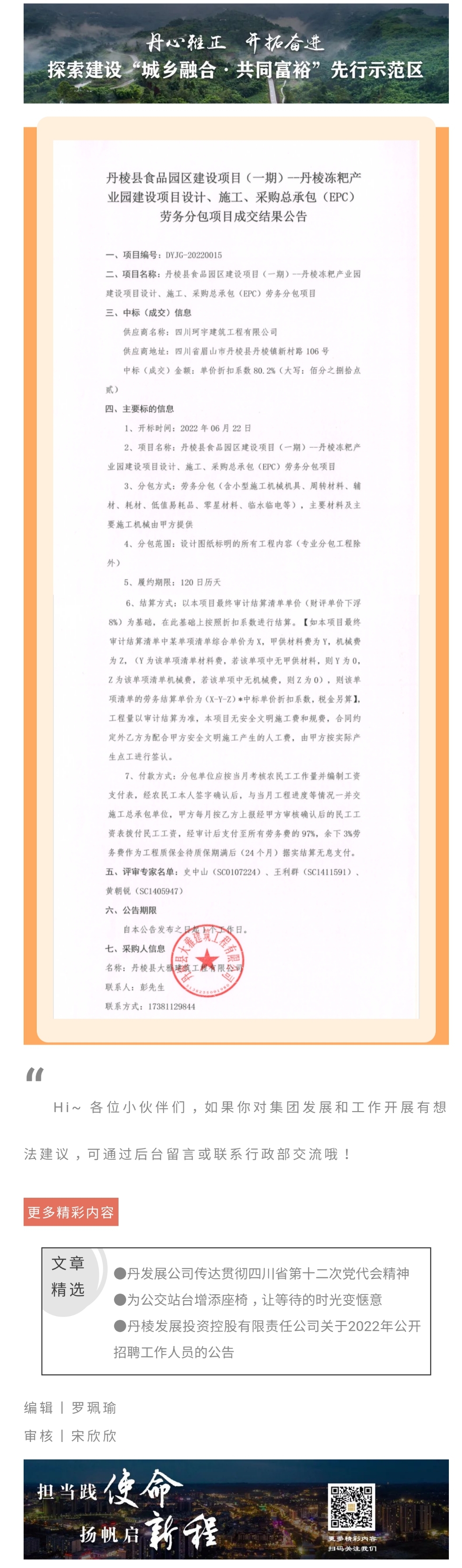 丹棱縣食品園區(qū)建設(shè)項(xiàng)目(一期)--丹棱凍粑產(chǎn)業(yè)園建設(shè)項(xiàng)目設(shè)計(jì)、施工、采購總承包(EPC)勞務(wù)分包項(xiàng)目成交結(jié)果公告