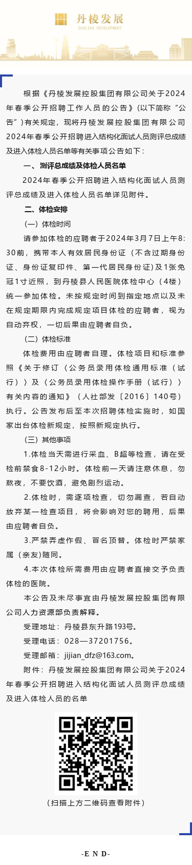丹棱發(fā)展控股集團有限公司關(guān)于2024年春季公開招聘進(jìn)入結(jié)構(gòu)化面試人員測評總成績及進(jìn)入體檢人員的公告