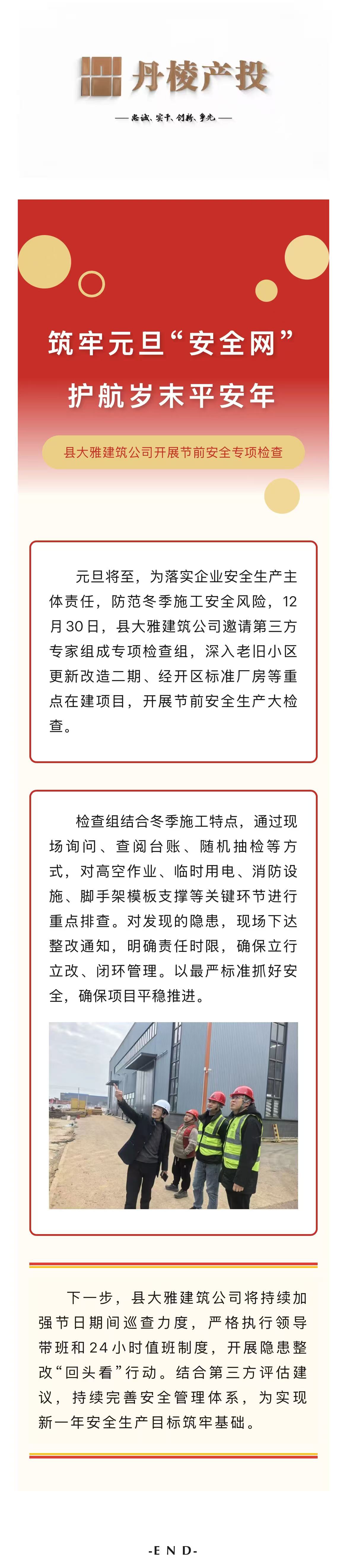【縣大雅建筑公司】筑治:筑牢元旦“安全網(wǎng)” 護航歲末平安年