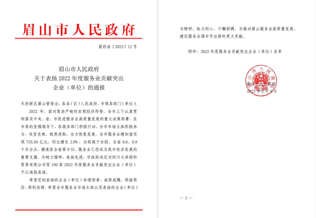 《關(guān)于表揚(yáng)2022年度服務(wù)業(yè)貢獻(xiàn)突出企業(yè)(單位)的通報(bào)》