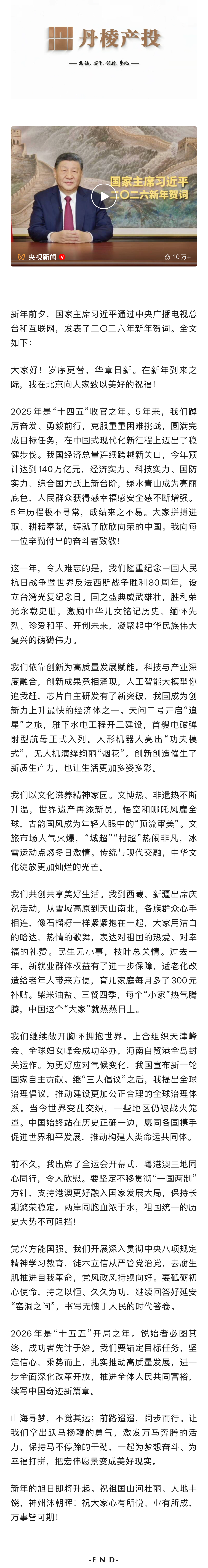 獨(dú)家視頻 | 國(guó)家主席習(xí)近平發(fā)表二〇二六年新年賀詞